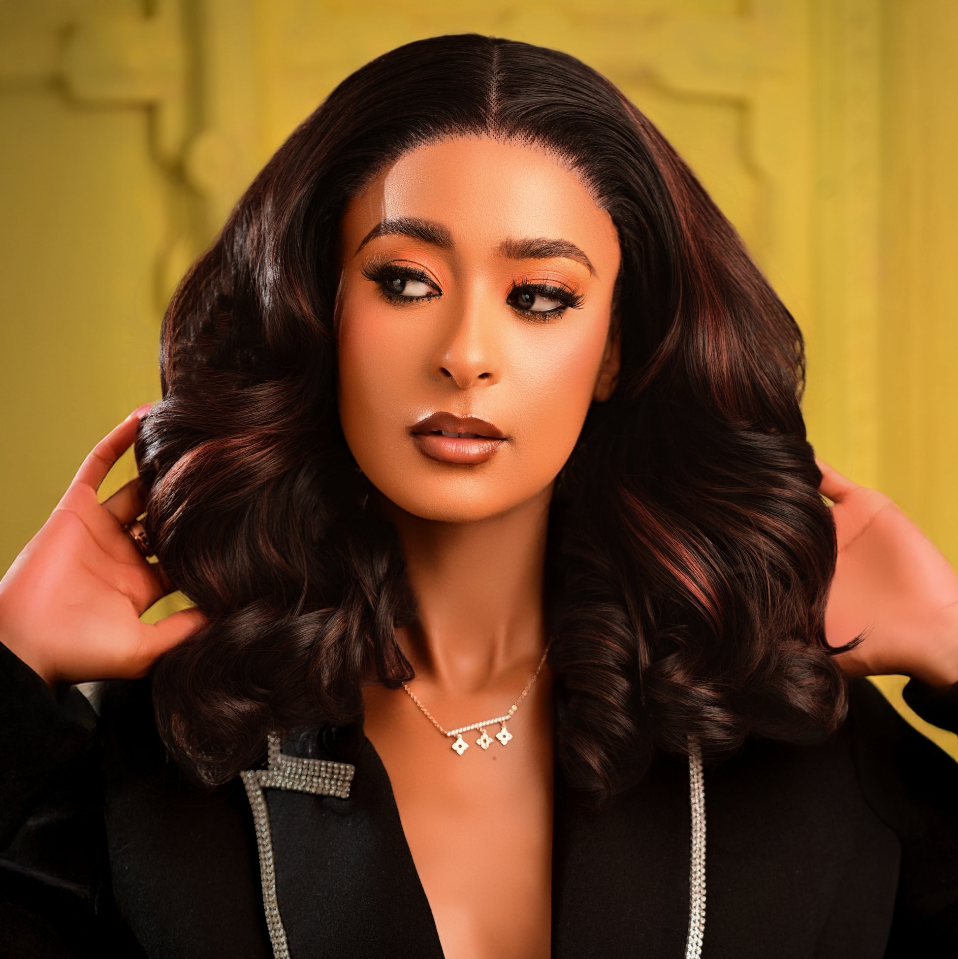 Crafted from premium raw human hair and designed in a natural black base with soft brown highlights, this 16-inch, super double drawn unit delivers volume, movement, and shine in all the right places.